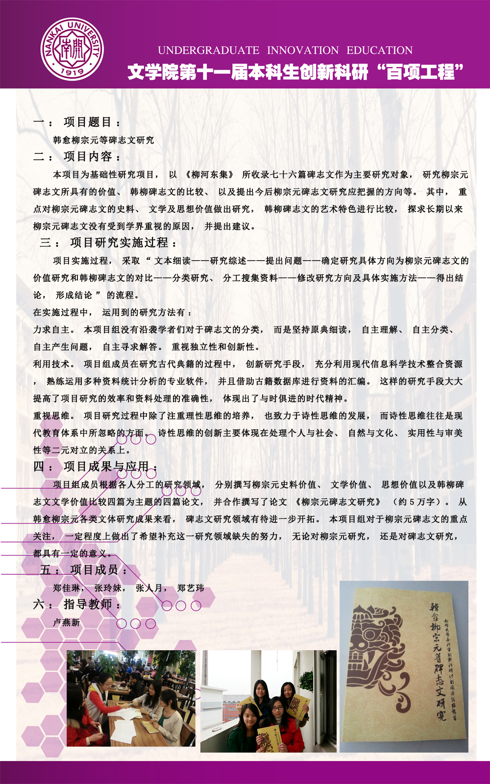 公司第十一届本科生创新科研“百项工程”图片展