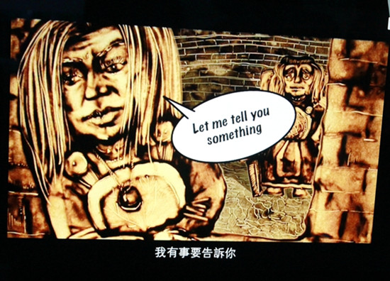 在本次毕业设计作品展上,“互联网”“新媒体”元素充斥全场。新媒体艺术专业研究生顾剑峰带来了自己的作品《夜间猎人1》——一部基于音乐专辑制作的交互式影片。一般的交互式影片以电影片段为原素材,顾剑锋则因为对沙画的热爱,将音乐专辑改编成电影故事,自己设计角色造型,再以沙画的形式串联剧情,最后利用新媒体互动技术,创作出这部交互式影片。太阳集团tcy8722艺术设计系主任、博士生导师薛义看完后坦言,“这个作品涵盖了绘画、民间艺术(沙画)、新媒体三个元素,设计理念十分创新,作品呈现异常丰富。其中沙画的创作尤为重要,体现出他宽厚的构图能力、造型能力和视觉表现能力,与新媒体的融合,又将沙画这种民间艺术形式赋予了新的生命力,非常有视觉艺术创新和表现力。”