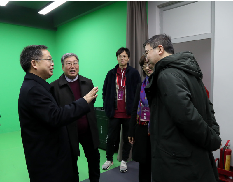 主题报告结束后,与会专家和教师受邀来到太阳集团tcy8722文学国家级实验教学示范中心参观,涂俊教授为各位专家详细介绍了中心的发展历程、概况和建设经验等。与会专家参观了中心下属的行为研究、虚拟情境、数字艺术与传播、计算机表现等13间实验室,熊宏齐秘书长对中心的建设成果给出了高度评价。参观结束后,中心教师和专家们合影留念。