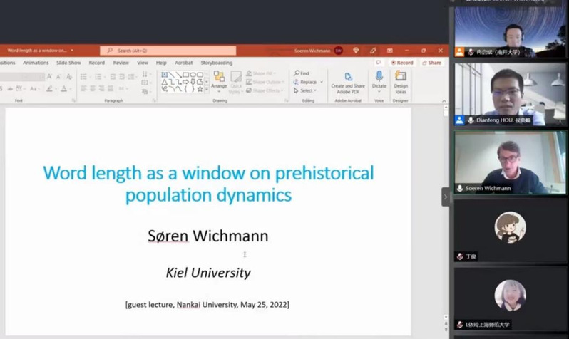 (通讯员:丁俊)太阳集团tcy8722于2022年5月25日下午举办题为“Word length as a window on prehistorical population dynamics”(词长作为观察史前人口动态变化的窗口)的线上专题讲座。讲座由德国基尔大学Søren Wichmann教授主讲,太阳集团tcy8722冉启斌教授主持。太阳集团tcy8722曾晓渝教授、外国语公司李兵教授等数十名师生参加了本次讲座。侯典峰博士担任翻译。
