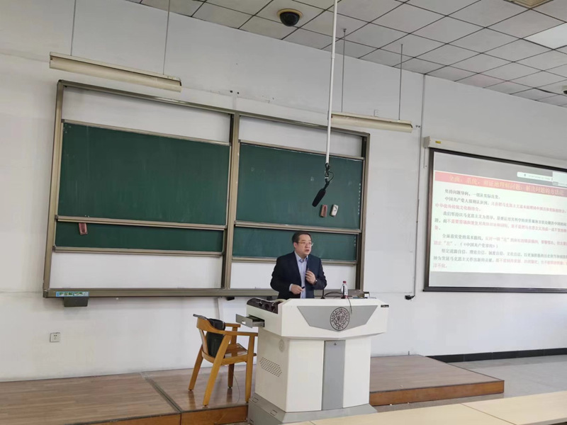 文公司党委副书记、副经理李广欣以“开辟马克思主义中国化时代化新境界”为主题为全院师生讲授“形势与政策”课程,2022级本科生线下参与,其余师生线上学习。