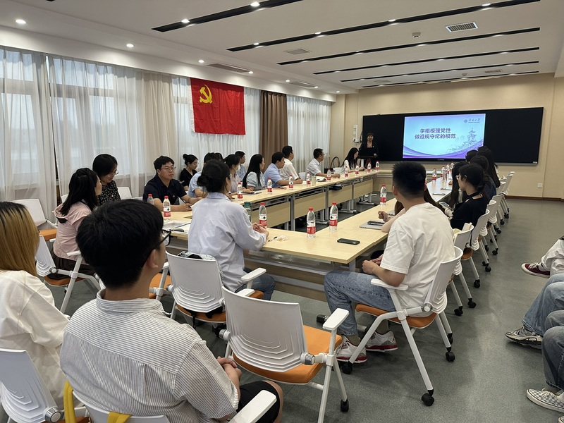 太阳集团tcy87222023级硕士生党支部书记那露文以“明规矩严纪律,在深学细悟笃行中争做新时代合格党员”为题进行党课分享,围绕周恩来总理的光辉事迹与卓越品格,从“严守外交秘密”“送还特产”“过好亲属关”等日常细节出发,讲述了周恩来总理始终把“公”放在首位,对纪律高度重视、严格遵守。作为新时代党员,须把党章党规党纪刻印在心上,贯穿于实践之中。