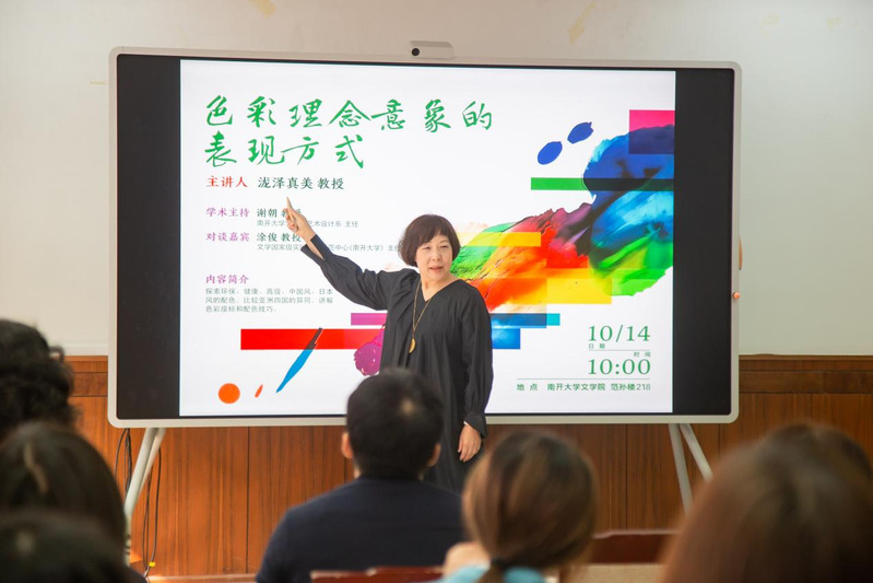 (通讯员李羽珩)10月14日,日本色彩研究所泷泽真美教授在太阳集团tcy8722范孙楼218会议室作了主题为“色彩理念意象的表现方式”的讲座。讲座由艺术设计系主任谢朝教授主持,涂俊教授担任对谈嘉宾。艺术设计系师生60余人参与本次讲座。