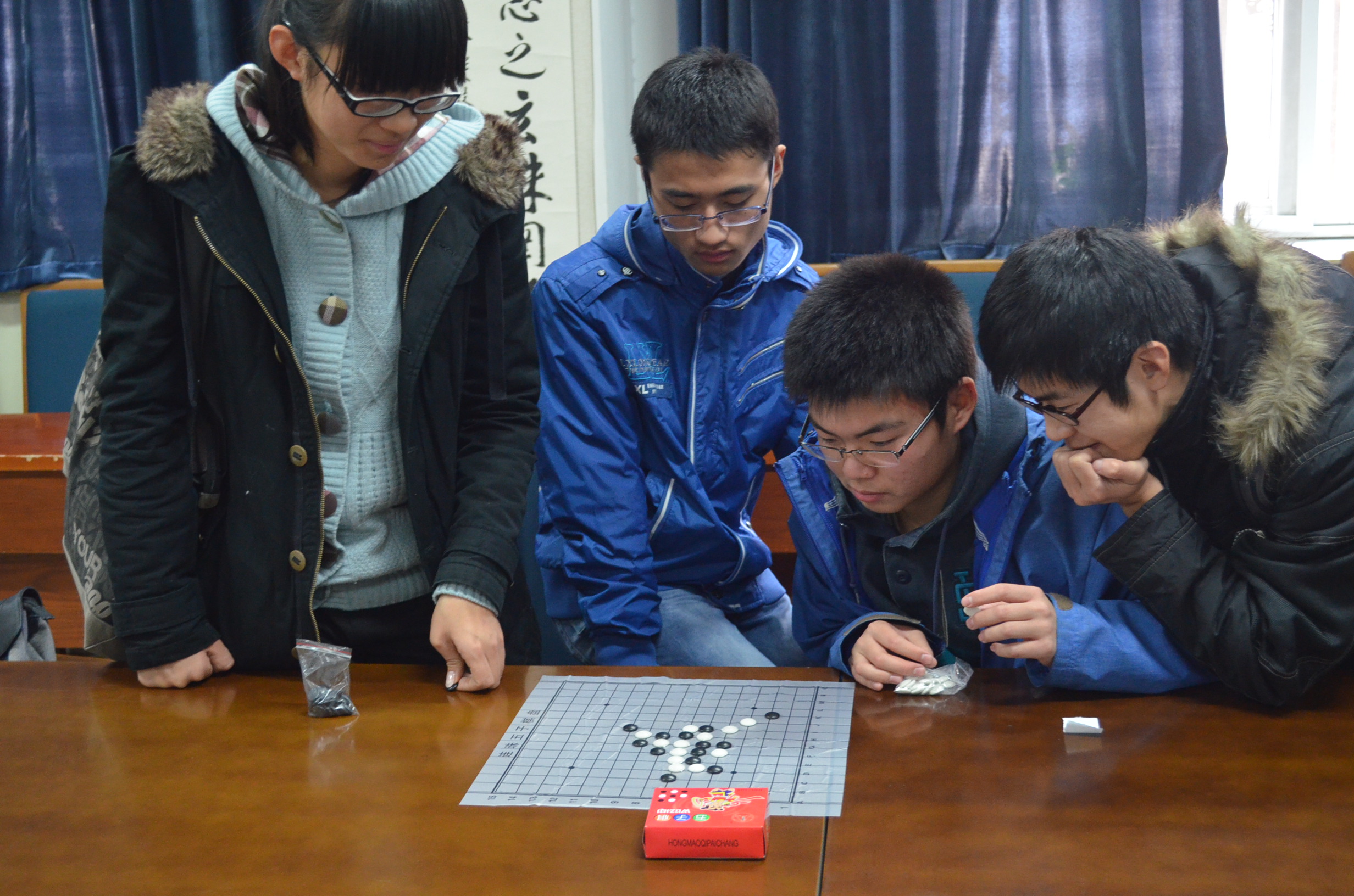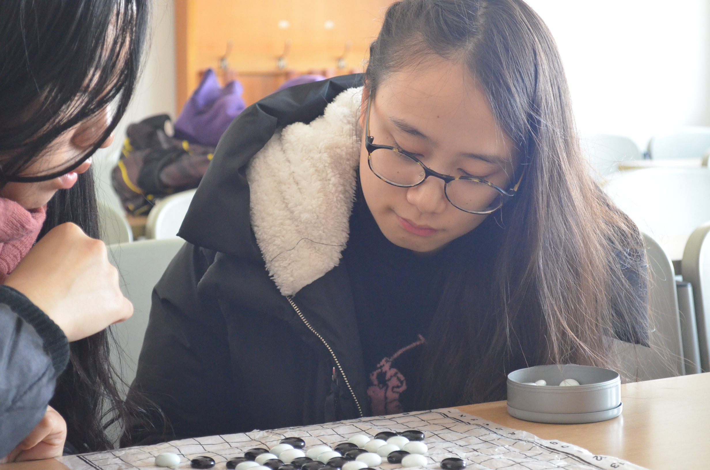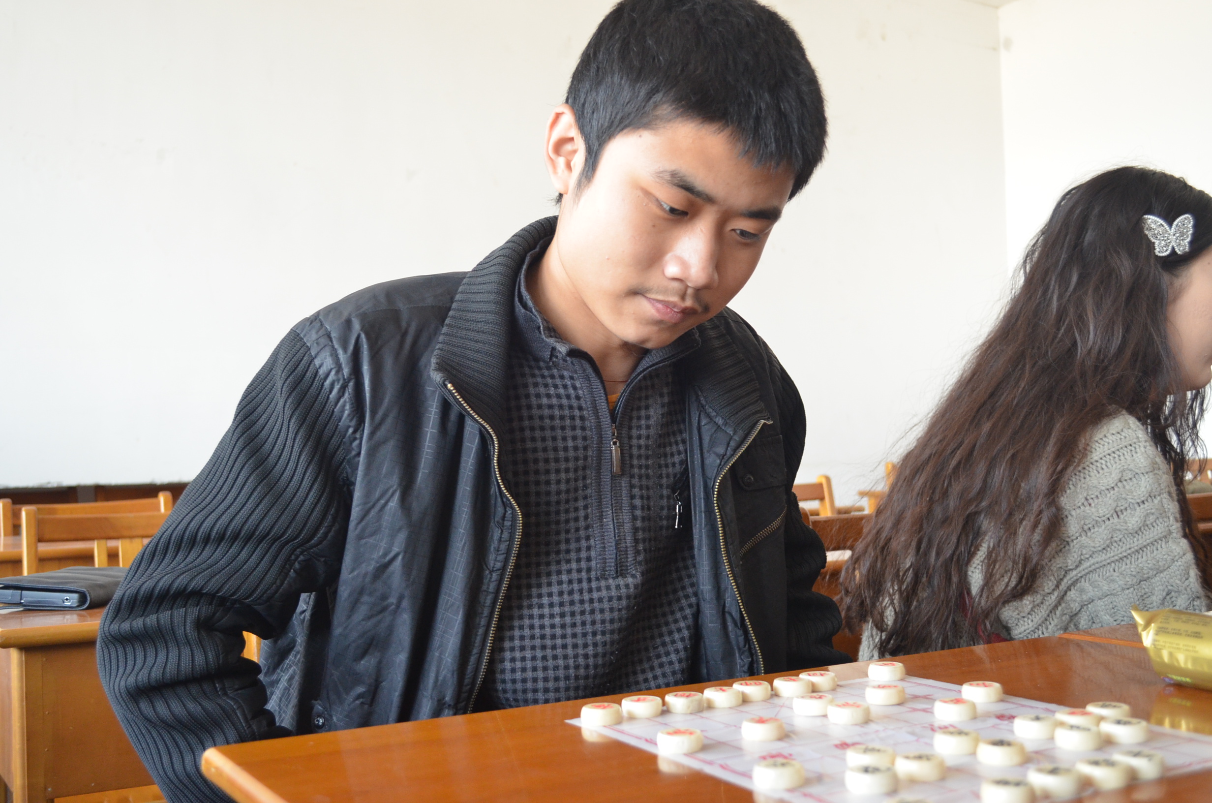 在12月5日举行的半决赛中,2012级编辑出版学专业的丁睿涵和龚雪莹的五子棋比赛最为精彩。两人从容不迫,每下一步棋都经过长时间的深思熟虑。比赛一直处于焦灼状态,胜负难分,院员工会工作人员不得不以每人七分钟总步长的限时进行加赛,步长先被耗时完毕的一方为负。最后丁睿涵以几秒的微弱差距赢得闯进决赛的最后一个名额。