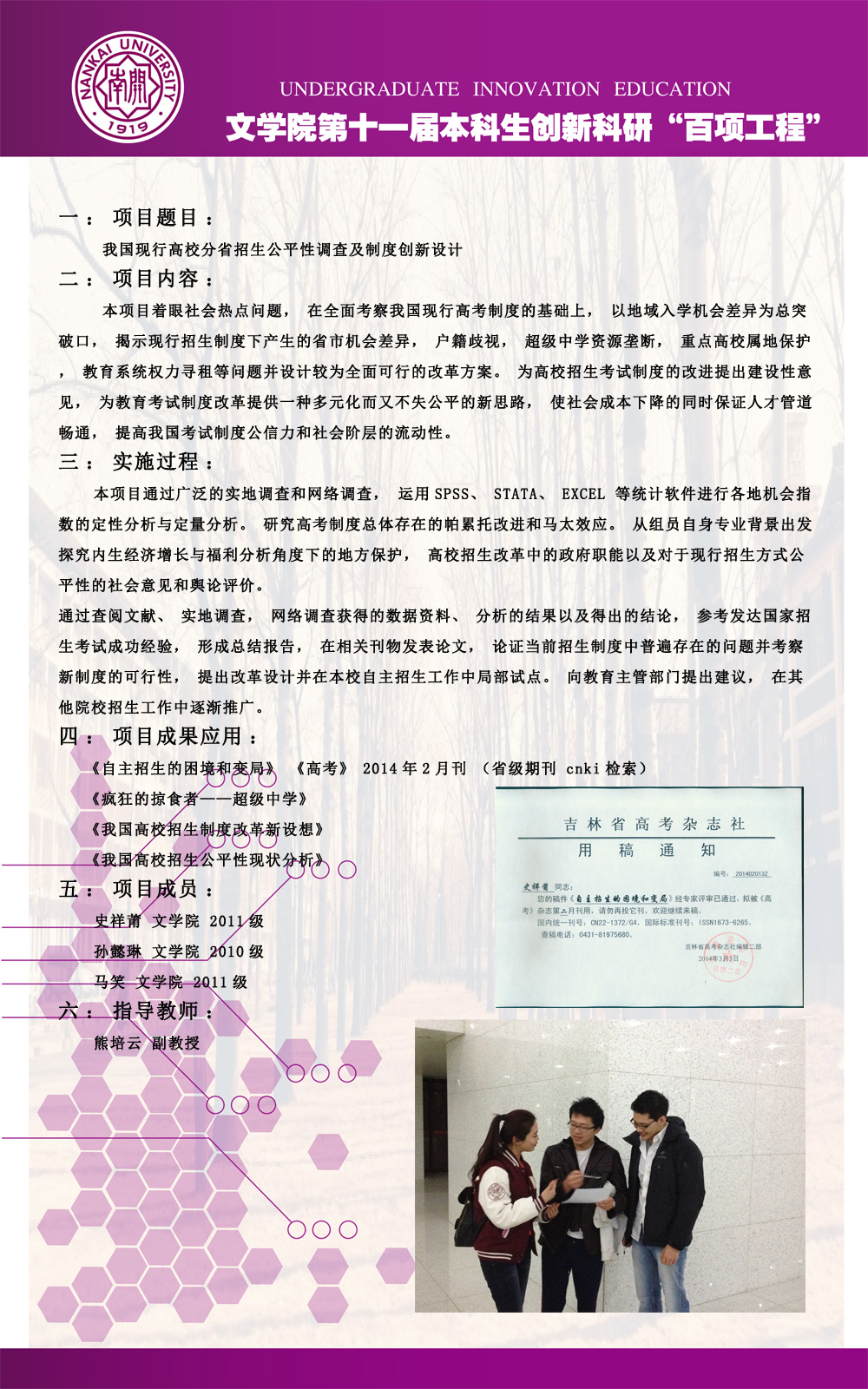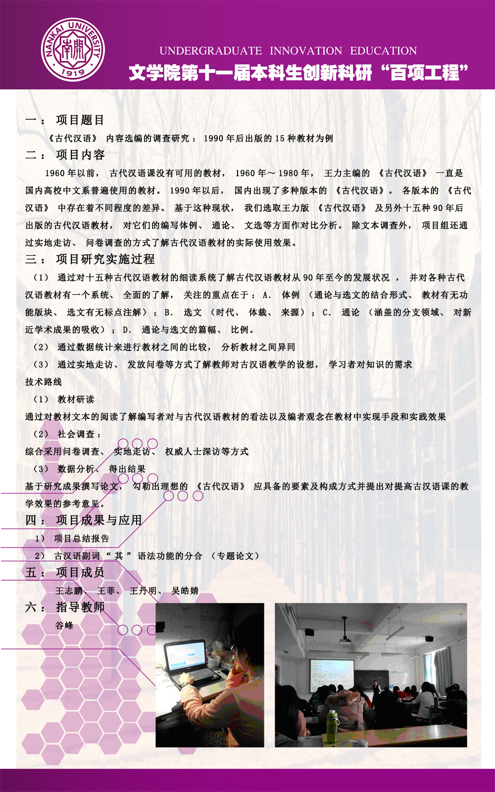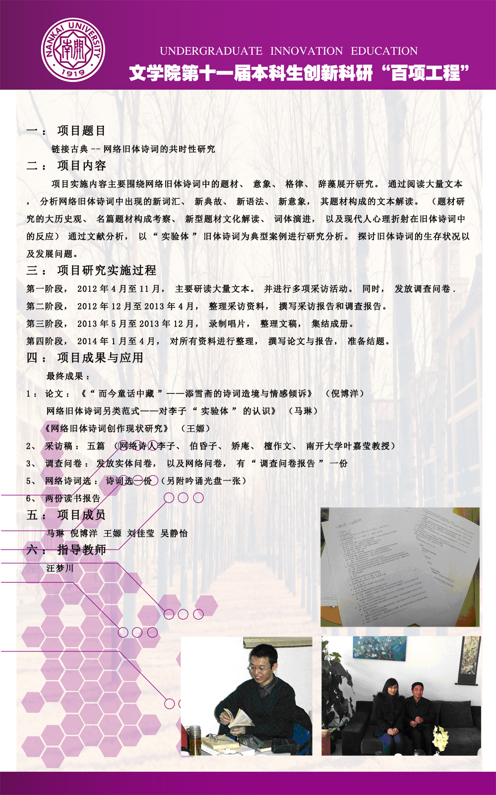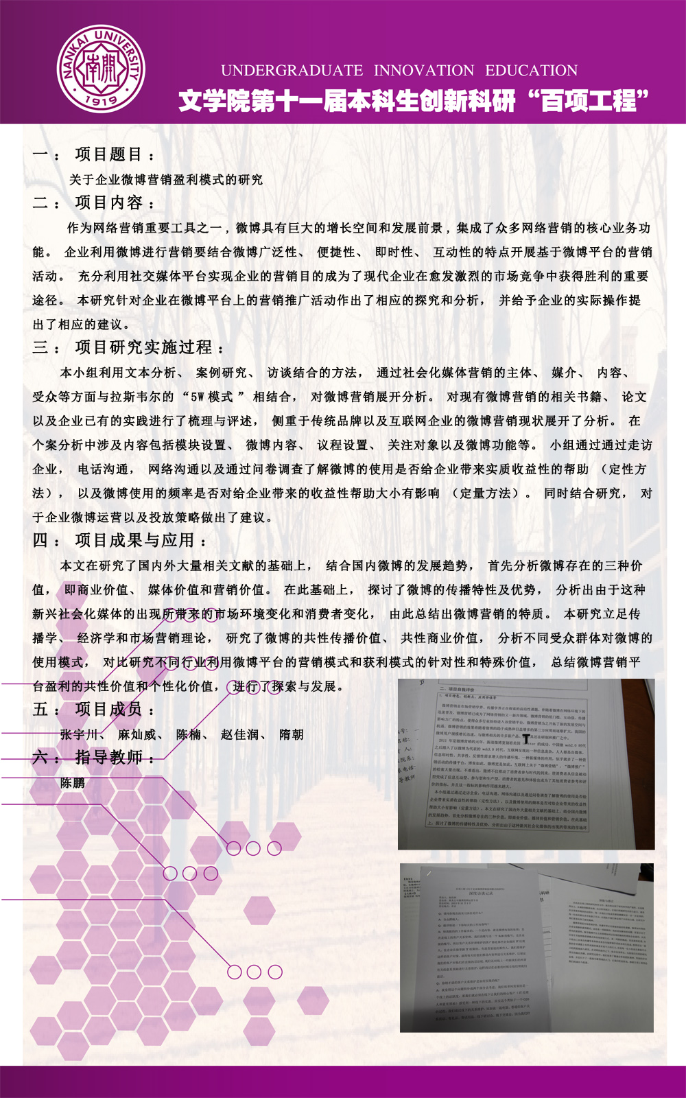 公司第十一届本科生创新科研“百项工程”图片展