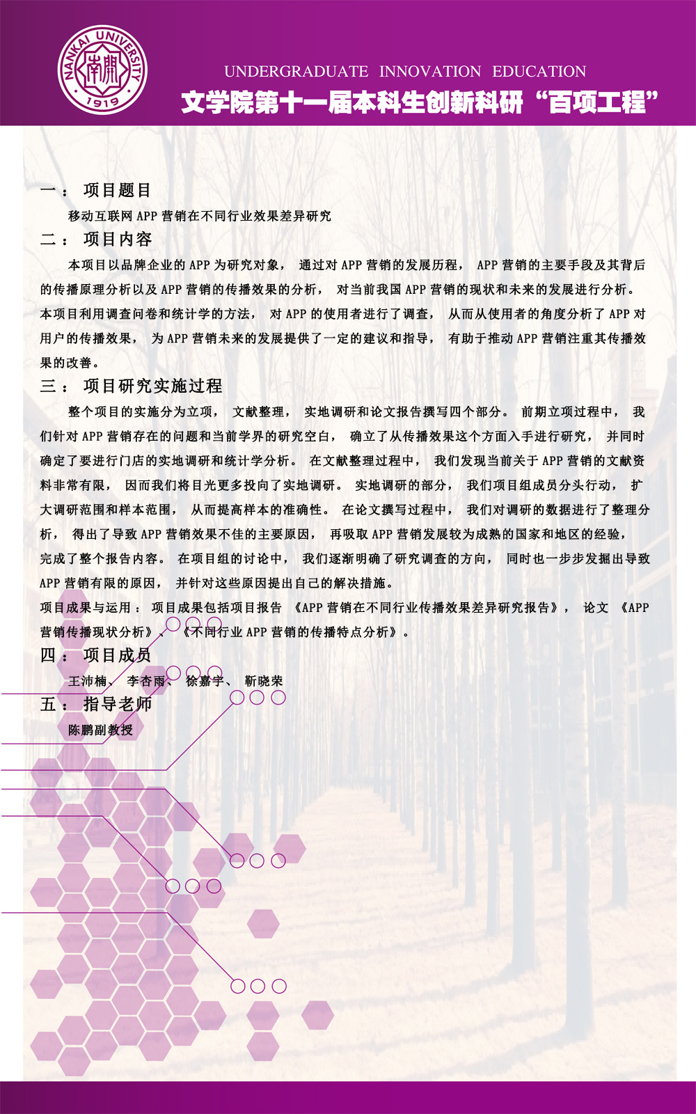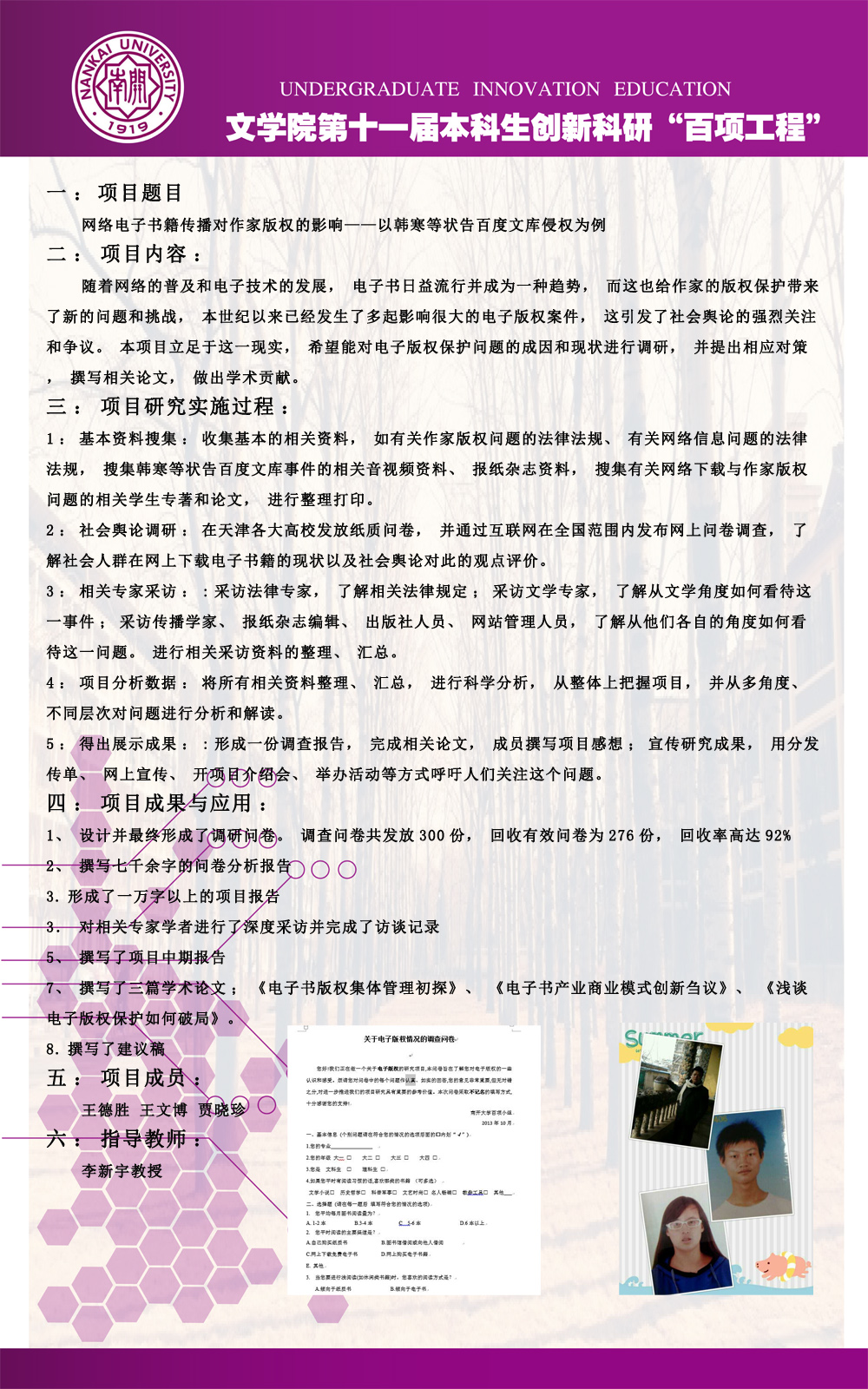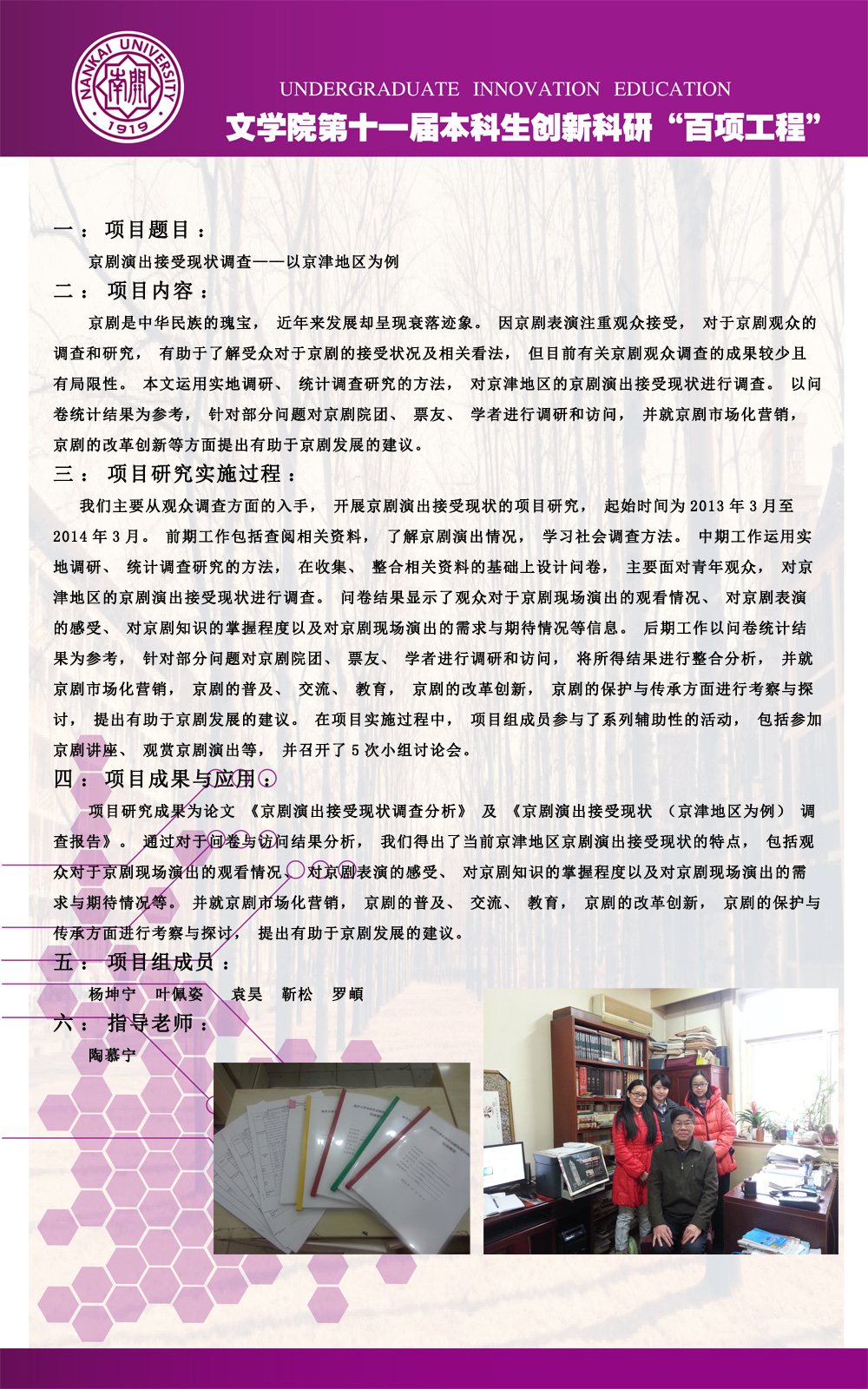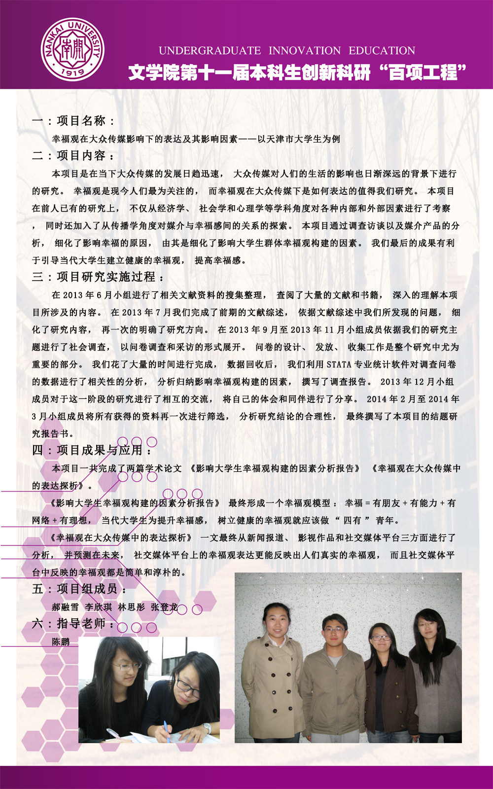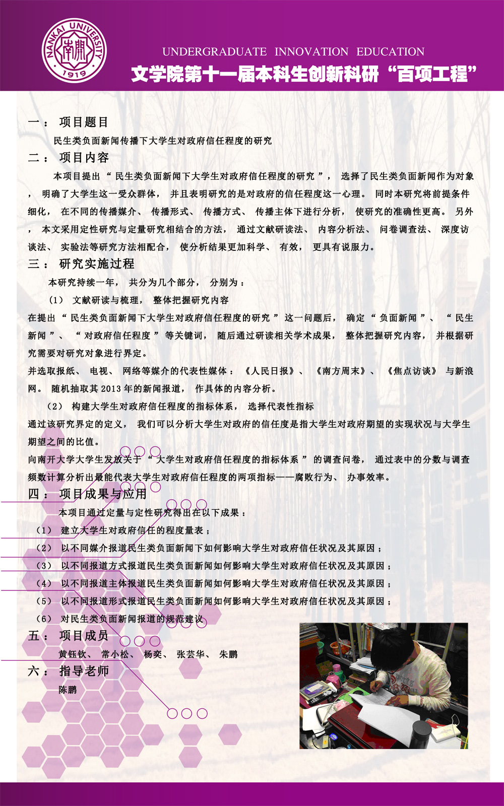 公司第十一届本科生创新科研“百项工程”图片展