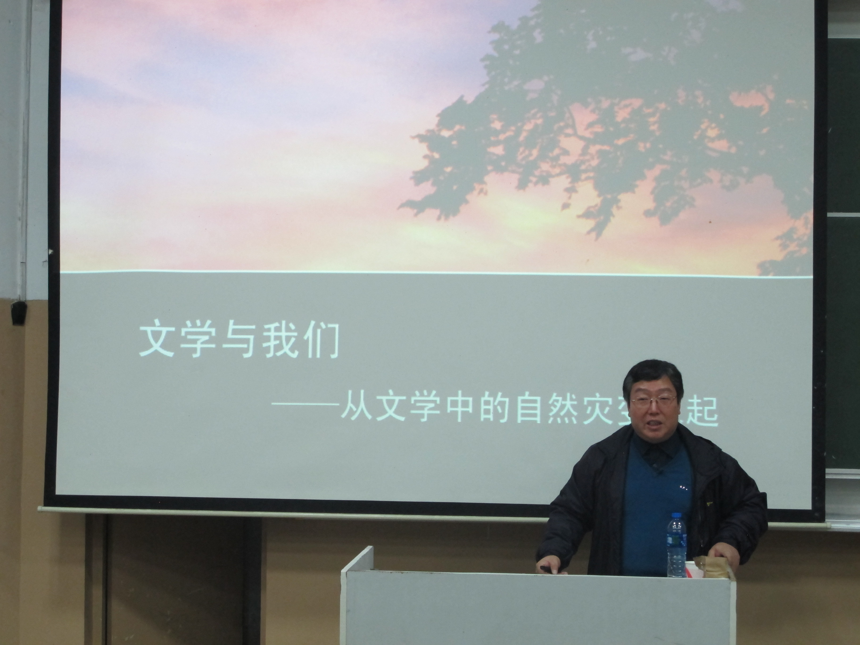 “文学是‘死’了吗?在我看来,文学并没有‘死’,”沈立岩教授开场时讲道,“现在这个图像时代,寄身于文字和纸张的文学却已经大为萎缩,似乎文学已经远离了我们,其实不然,因为作为文学核心特质的文学性现今依旧大行其道。”沈立岩教授从我国古代文学经典作品《诗经》入手,以自然灾害这一独特的视角切入,深入浅出地为同学们讲解了自然灾害在文学作品中的体现以及自然灾害对社会政治的影响。沈立岩教授指出文学作品不仅具有审美价值,同时还对我们了解世界有着重要的认知作用。“诚然‘文学不烤面包’,可人不应生来只吃面包,人还应有精神生活,而文学就可以提供这样的精神生活。”随后,他以春秋时期各国外交事件为例,说明了“不学诗,无以言”。