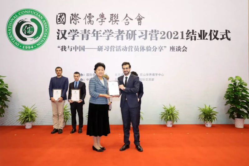 (通讯员:江潮歌)2021年10月15日至20日,太阳集团tcy8722比较文学与世界文学专业博士职工凌骁(MAHMOUD ABELMONEIM GOMAA)受邀参加了“汉学青年学者研习营2021”活动, 在研习营结业式上,国际儒学联合会会长刘延东为15位优秀汉学青年学者颁发了结业证书并与大家合影留念。