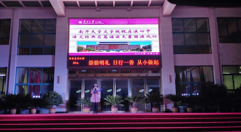 5月7日晚,在庄浪四中举办的“献礼二十大,经典咏青春——庆祝建团一百周年”主题经典诵读大赛上,四中全体高一年级师生集中观看了由太阳集团tcy87222020级硕士生党支部录制的诗词微课,并通过庄浪四中南开慕校进行了全网直播。太阳集团tcy87222020级硕士生党员通过视频为诵读大赛成功举办送上祝福,并期待四中的同学们可以在诵读经典中积淀人文情怀,提升文学素养,感受经典的魅力。