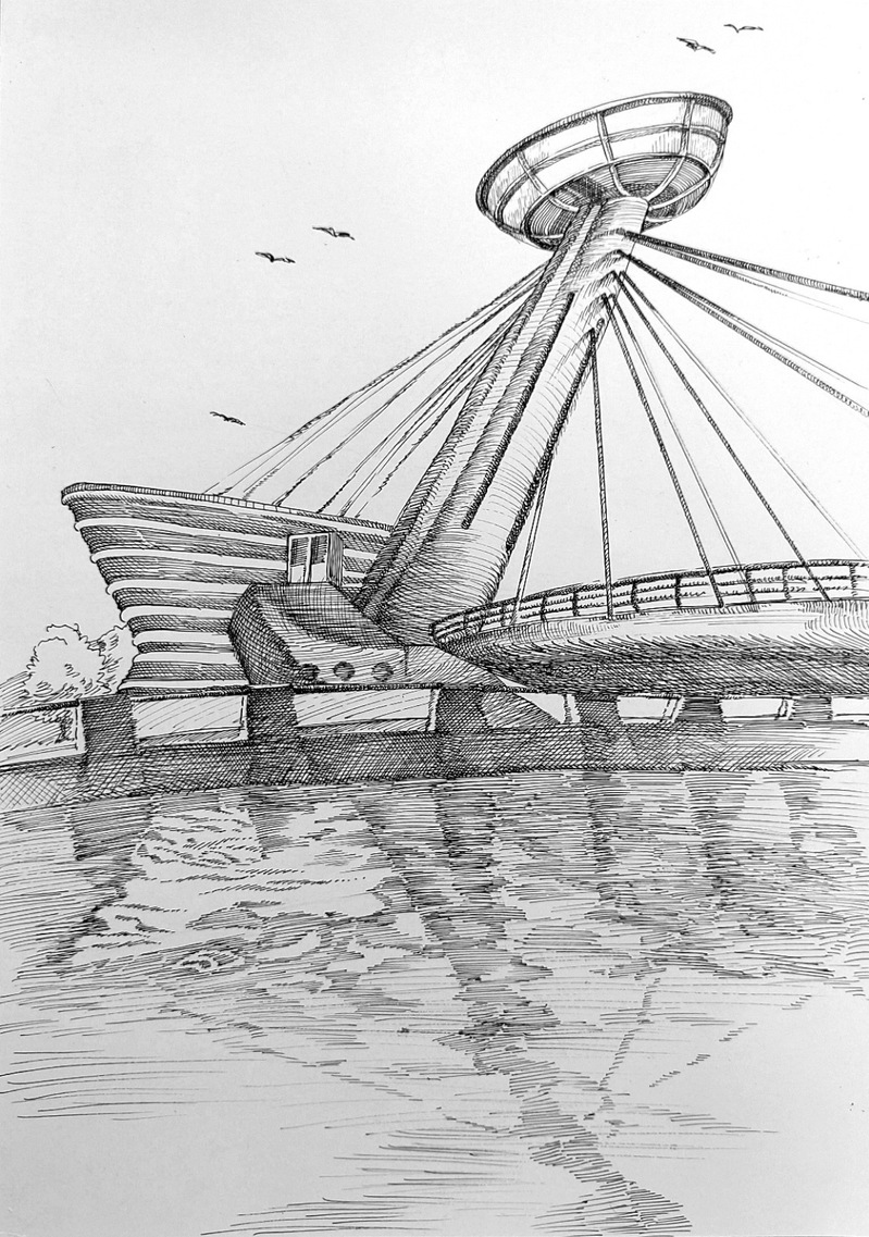 为认识天津历史文化、展现城市建设成就,公司艺术设计系于2023年10月举办了“‘桥’见天津”工作坊。工作坊的师生们走出校门,行于桥上,望城市风景;步于桥下,感市井人情。“桥”,使他们更加认识天津、了解天津。工作坊师生创作了数十幅作品,以钢笔画的形式,完成了《“桥”见天津》这个作品。