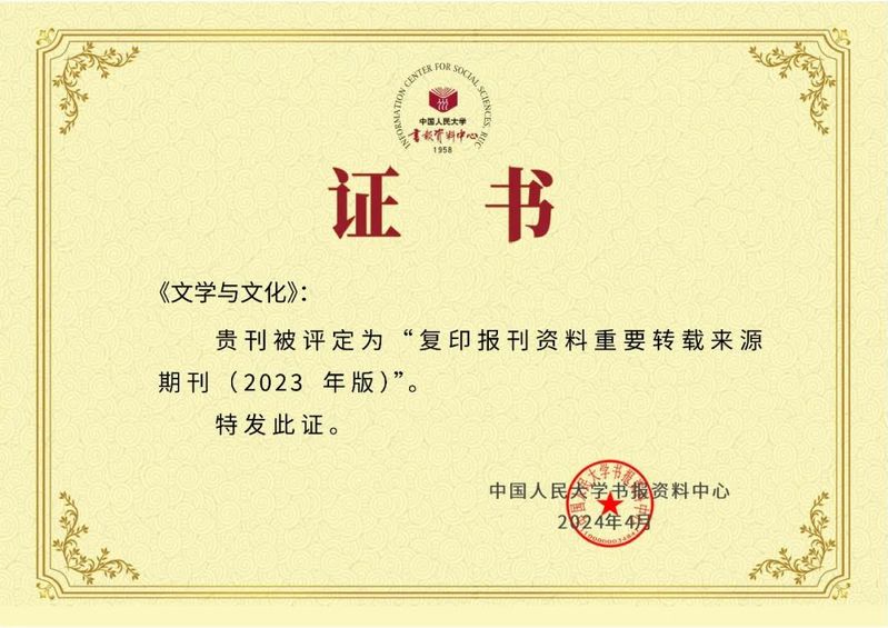 近日,中国人民大学书报资料中心发布“复印报刊资料重要转载来源期刊(2023年版)”总名录。综合2020—2022年期刊转载数据和同行定性评审结果,公司主办的学术期刊《文学与文化》继续入选“复印报刊资料重要转载来源期刊(2023年版)”。
